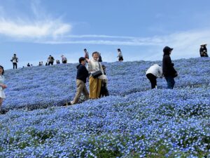 ネモヒィラが満開で小高い山がネモフィラで埋まって壮大な景色でした。